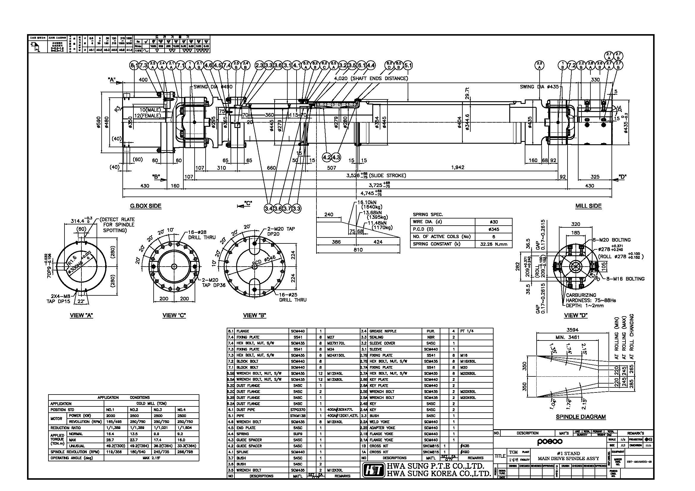 冷延部で使用されるTCMスタンドラインは、熱延鋼板を酸で洗浄し、その後ミルで再圧延を行うことで、滑らかで光沢のある鋼板を製造するための重要な設備です。このプロセスにおいて、モーターとロールを接続するスピンドルは、熱延工程と異なり、高トルクの伝達に加え、回転時に滑らかな鋼板表面に傷を付けない安定した高速回転が求められます。