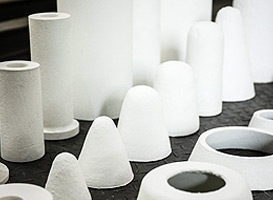 セラミック/バイオファイバーを用途に適した前処理を施した後、有機および無機バインダーを混合し、真空成形で製造された製品です。顧客の仕様に応じて、多様な形状や密度で製造することが可能です。また、使用されるファイバーおよびバインダーの種類によって、適用温度が決まります。