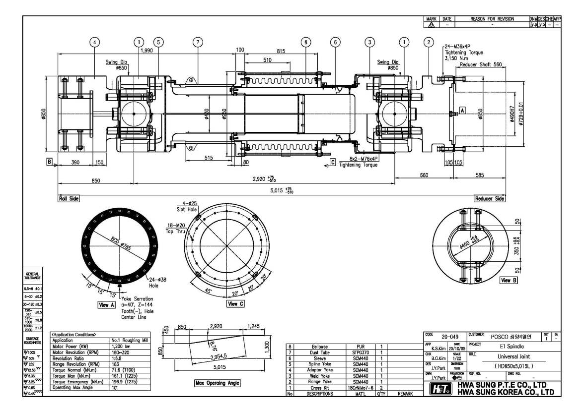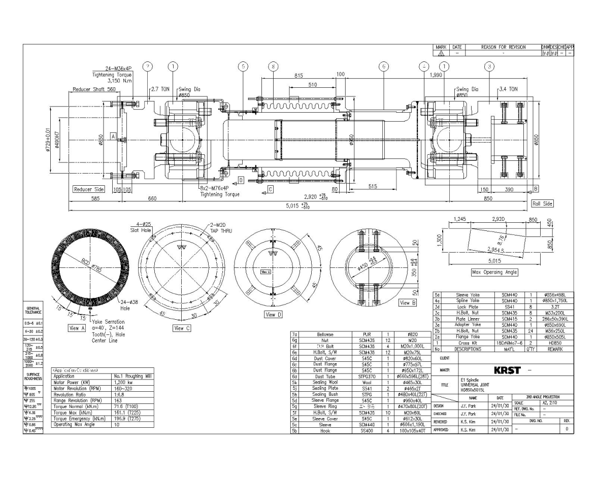 그 중에 첫번째 폭압연을 시켜주는 E1 Spindle은 선단에 위치하기에 가장 큰 부하를 받고, 부하Torque가 높아, 외자설비 의존도가 100% 이였는데