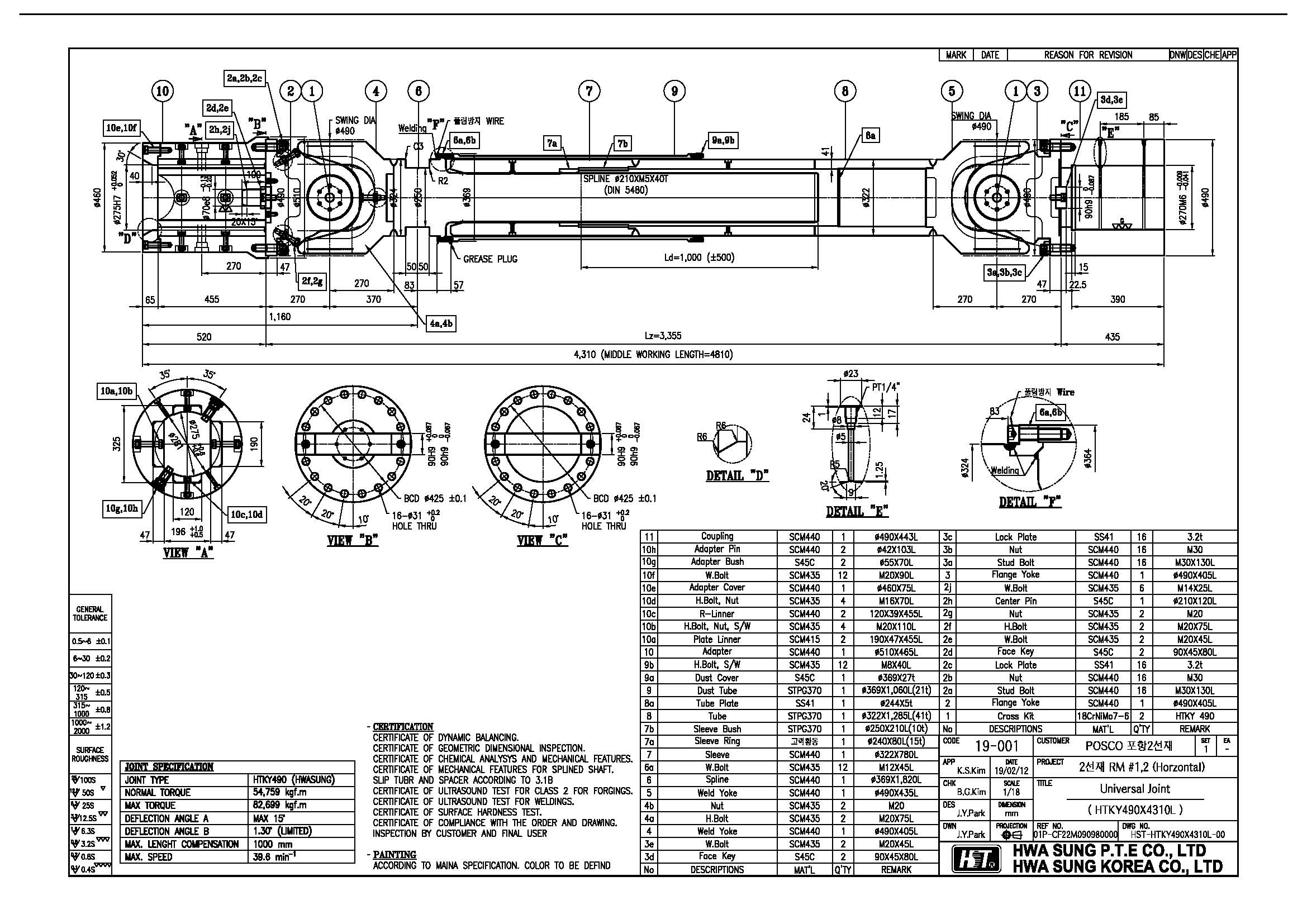 Posco PH 2선재 Rough Mill Spindle의 전량 일본 N 사의 제품을 사용을 했었습니다.